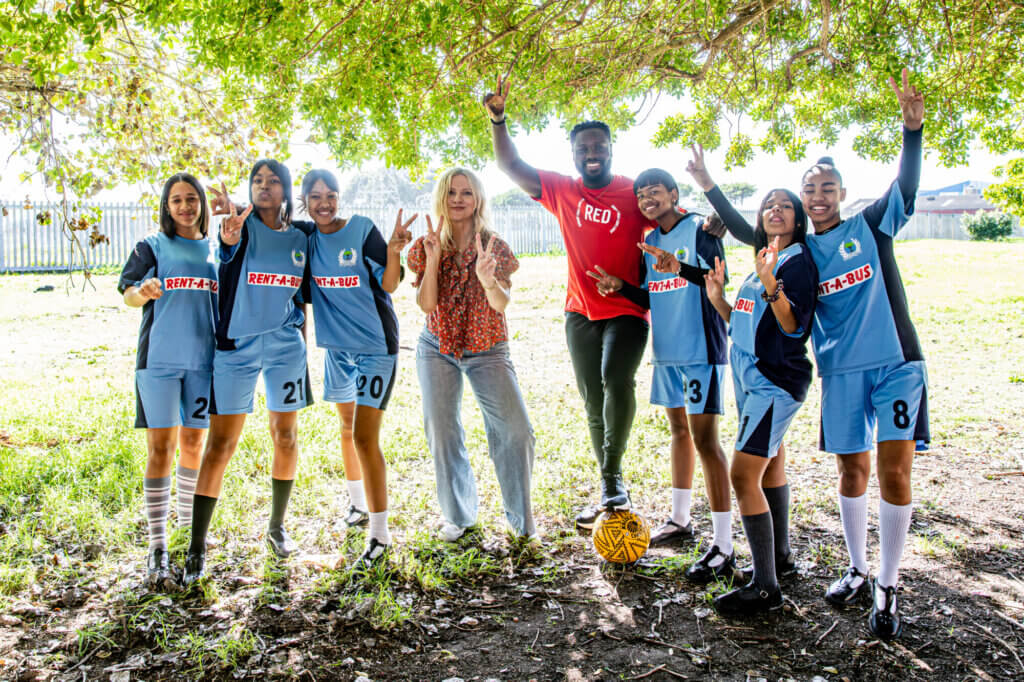 (RED)UCATOR Dayo Okeniyo and Chair of the (RED) Creative Council, Laura Brown, traveled to South Africa with (RED) to see (RED)’s work on the ground. The group visited (RED)-supported health programs across Johannesburg, Pretoria, and Cape Town that offer essential testing, treatment, and care services to key populations in the AIDS fight.