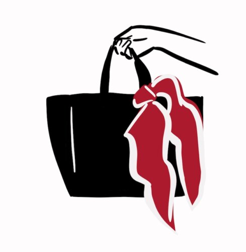 - Roll the scarf and wrap it around your purse’s handle strap.