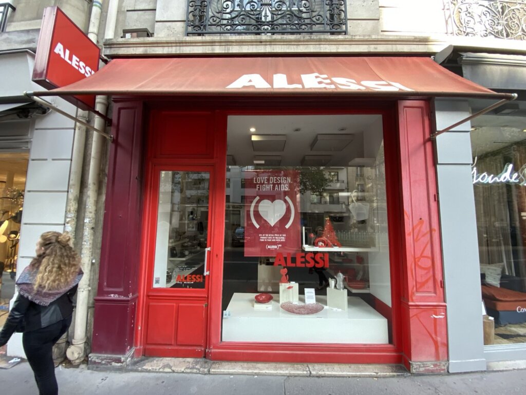 During the week leading up to Replenishment, Alessi turned more than 30 products (RED) to generate money for the AIDS fight on Alessi.com and at Alessi stores in the U.K, France, Italy, and Germany. They also featured (RED) signage in their stores and even turned some of their storefronts (RED)!