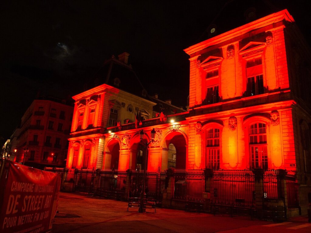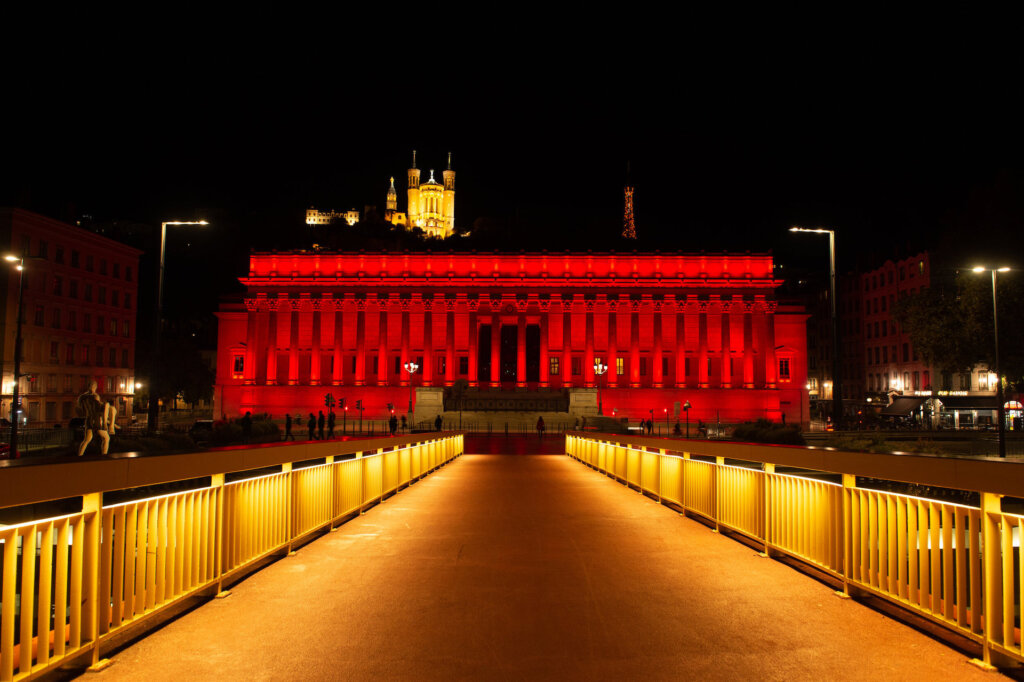 At night, the city of Lyon turned (RED) to end AIDS. From City Hall, to the Justice Court, to the Confluence Museum, (RED) was everywhere to be found.
