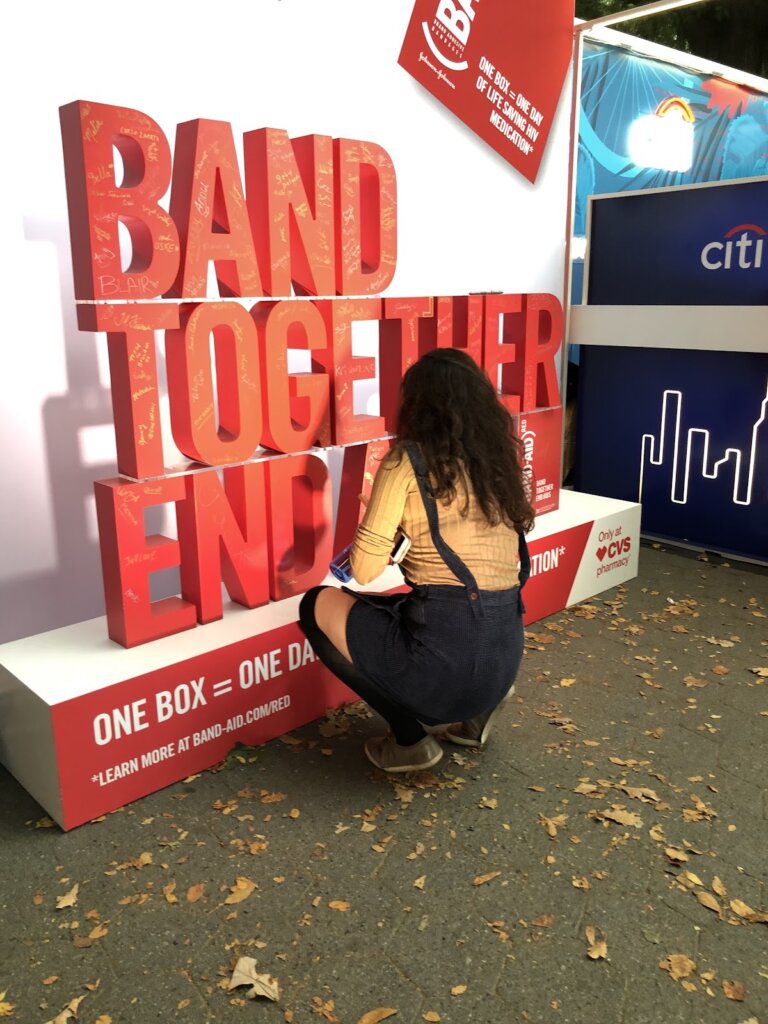 In conjunction with Johnson & Johnson’s ongoing partnership with Global Citizens, (BAND-AID)RED was featured all over the festival, taking it to a whole new level. There was an awesome BAND TOGETHER END AIDS booth for festival attendees to take pictures with. And the best part? Each photo triggered a $1 contribution to the Global Fund through the Donate A Photo App. Attendees were also encouraged to sign the displays as a symbol of collective action in the fight to end AIDS.
