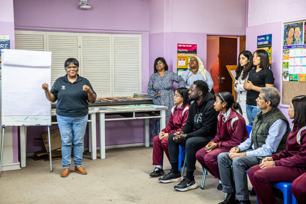 (RED)UCATOR Dayo Okeniyo and Chair of the (RED) Creative Council, Laura Brown, traveled to South Africa with (RED) to see (RED)’s work on the ground. The group visited (RED)-supported health programs across Johannesburg, Pretoria, and Cape Town that offer essential testing, treatment, and care services to key populations in the AIDS fight.
