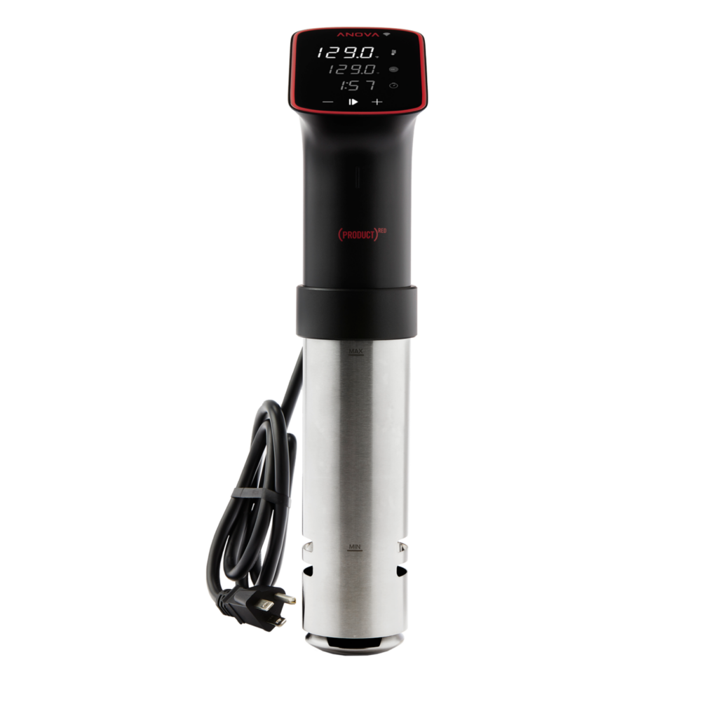 Anova The (ANOVA)RED Precision Cooker Pro was ruggedized to thrive in the most demanding of kitchens, able to heat up to 100L of water when in a covered container, and run for a minimum of 10,000 hours straight. Constructed of stainless steel, it is drop tested and IPX-7 rated; drop it on the floor or dunk under water, and you can keep on cooking, no problem.5% of the purchase price from all (ANOVA)RED Precision Cookers goes directly to the Global Fund, with a minimum guaranteed donation of $200,000.