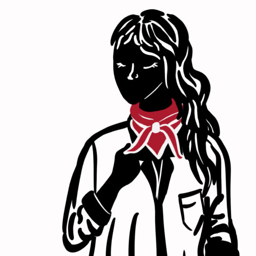 - Then, tie a knot at the back of your neck, behind the ears. They say silk on hair does wonders, so not only does it make a great hair accessory but it’ll also be non-damaging to your hair!